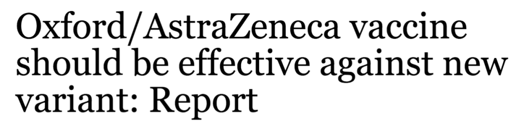 (新闻源:https://www.business-standard.com/article/international/oxford-astrazeneca-vaccine-should-be-effective-against-new-variant-report-120122700598_1.html)