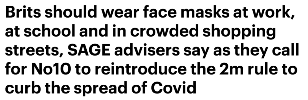 (新闻源:https://www.dailymail.co.uk/news/article-9102603/Coronavirus-UK-Bring-2-metre-rule-wear-masks-work-school-SAGE-warns.html)