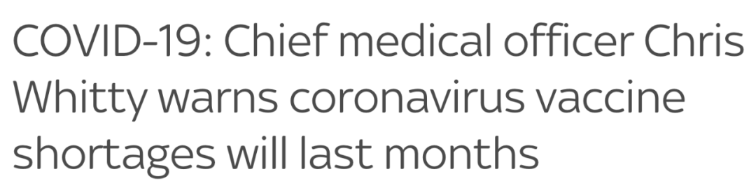 (新闻源:https://news.sky.com/story/covid-19-chief-medical-officer-chris-whitty-warns-coronavirus-vaccine-shortages-will-last-months-12176673)