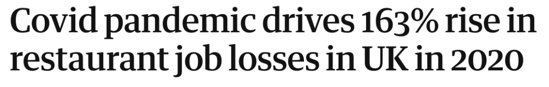 (新闻源:https://www.theguardian.com/business/2021/jan/04/covid-pandemic-drives-163-rise-in-restaurant-job-losses-in-uk-in-2020)