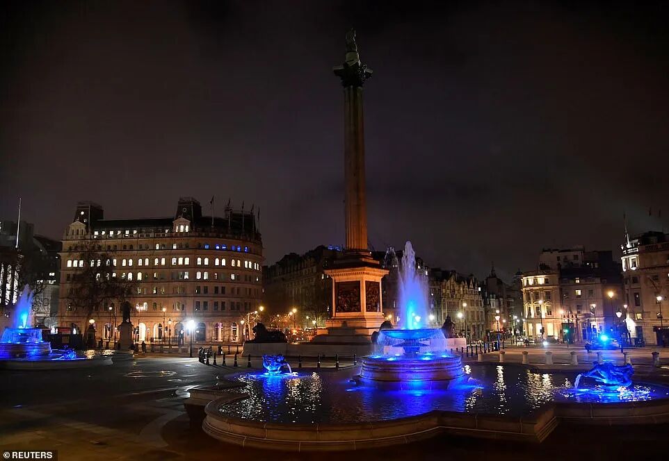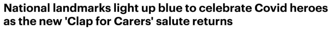 (新闻源:https://www.dailymail.co.uk/news/article-9123391/National-landmarks-capital-light-blue-celebrate-NHS-frontline-workers.html)