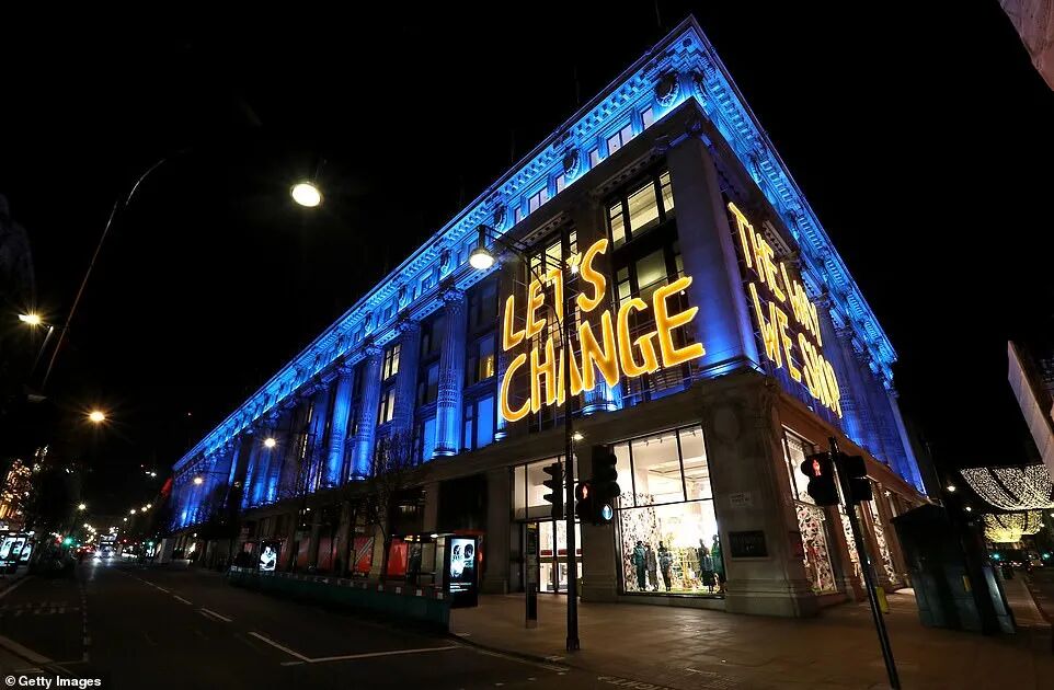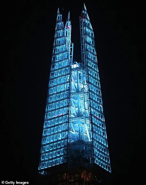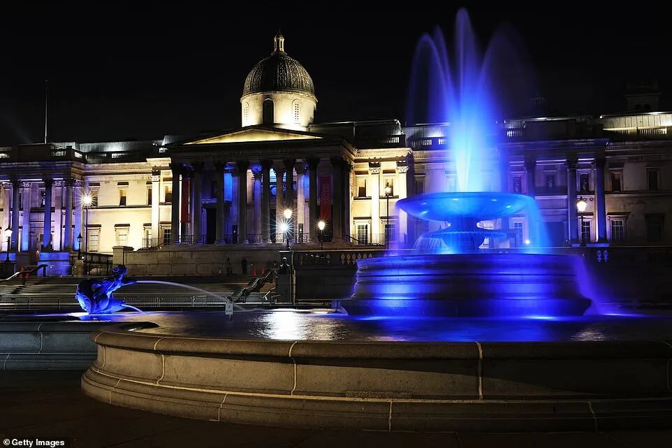 活动开始时,国家标志性建筑也被装饰成蓝色,以此向NHS一线的数百名工作人员致敬,这是去年3月发起的#浅蓝色倡议的一部分。