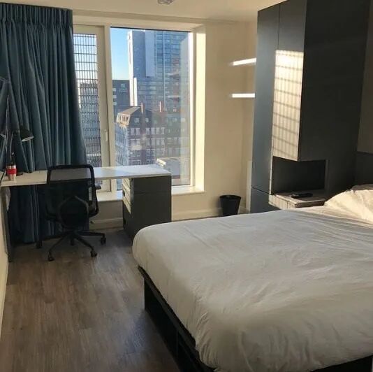 房型是silver studio,含独立卫浴、厨房。公寓内含健身房、洗衣房、自习室。楼下有coop超市和costa,对面是思达和张记火锅。步行3分钟左右即可到达文图、商院,中途会路过快乐柠檬、易捷、Tesco等,距市中心10分钟左右步行路程。房间是我3月份回国前特意去选了占上的,价格可刀