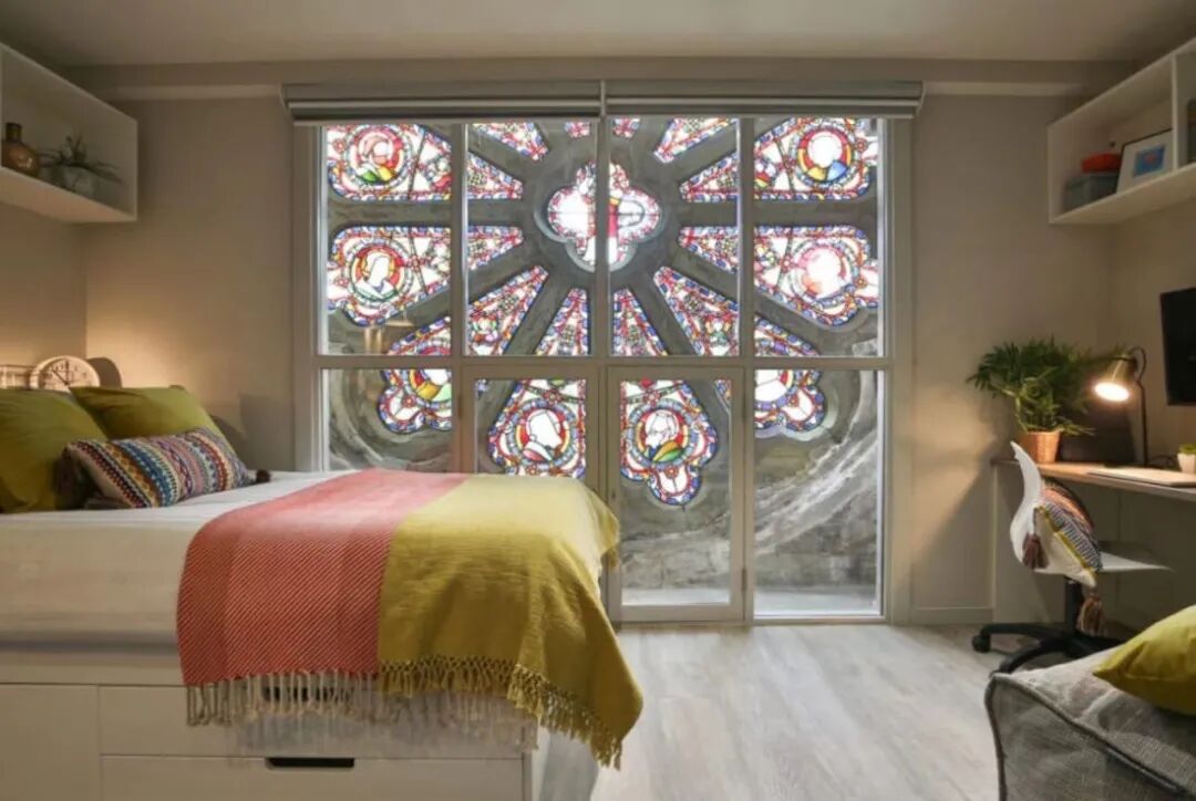 独立厨房卫浴,上下层都是中国人,有电影院,洗衣房,自习室,健身房,疫情期间必备~最主要是离学校近,非常方便。宿舍在教堂里,很漂亮