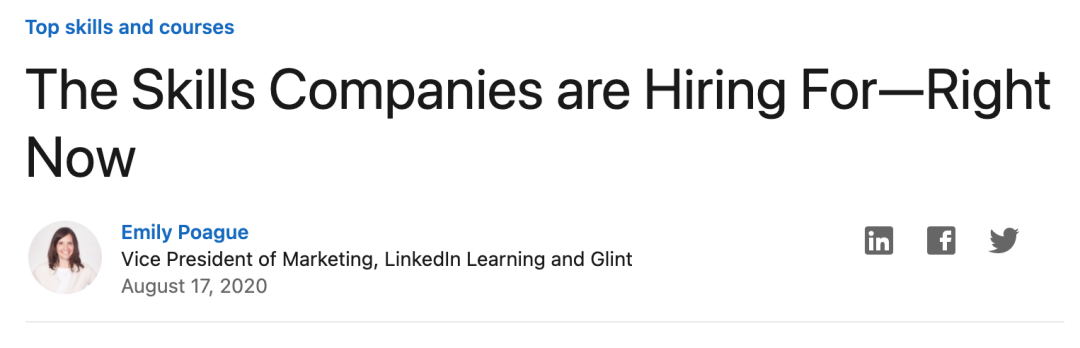 而疫情下,随着大多数地区WFH趋势,现如今雇主寻求的能力也发生了一些改变,Linkedin根据其数据库内,最新的职位统计,发布了最新十大雇主最看重的能力报告,并且附上了相关的限免课程,这些技能将使你在远程工作的环境中凸显自己,其中包括: