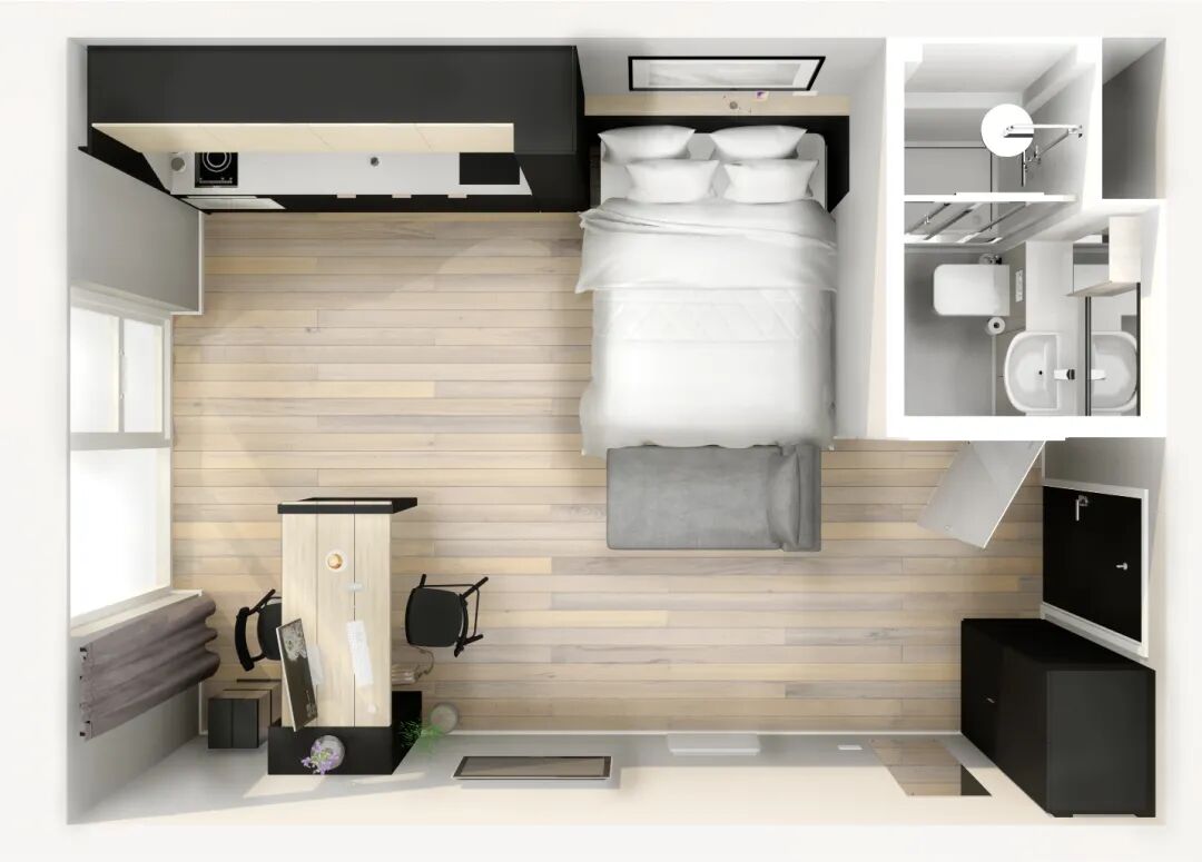 维塔学舍拥有高品质的室内装修及硬件设施,宽敞的室内面积令人心情愉悦。大床、浴室、厨房、智能电视及高速WIFI一应俱全,令入住者足不出户即可乐享生活。