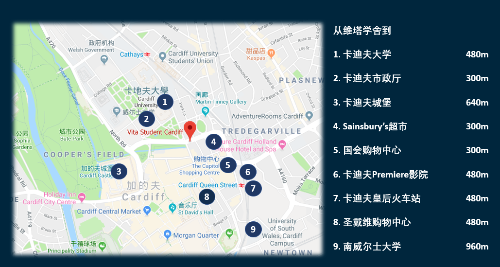 维塔学舍·柏克花园地处城市黄金地段,步行至卡迪夫大学仅仅需要五分钟,距离各大主要城市地标及商业区都只有短短几分钟的路程,不仅成为城中心极为稀缺的金牌社区,更是学生们梦寐以求的理想居所。