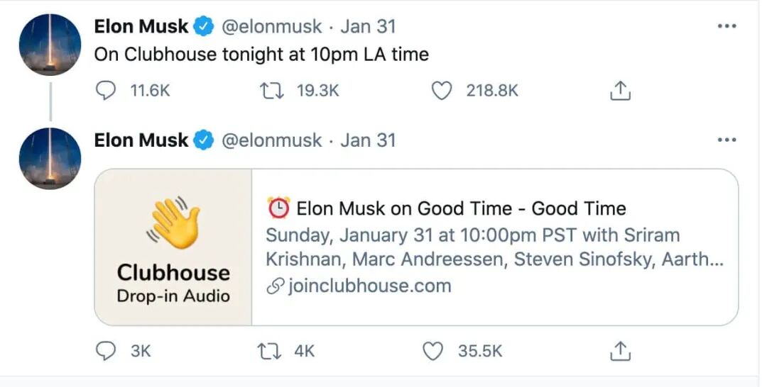 自从他宣布在Clubhouse上开设"Musk on Good Time"直播间,并邀请了几个CEO朋友来唠嗑,这个APP就开始火得一发不可收拾。