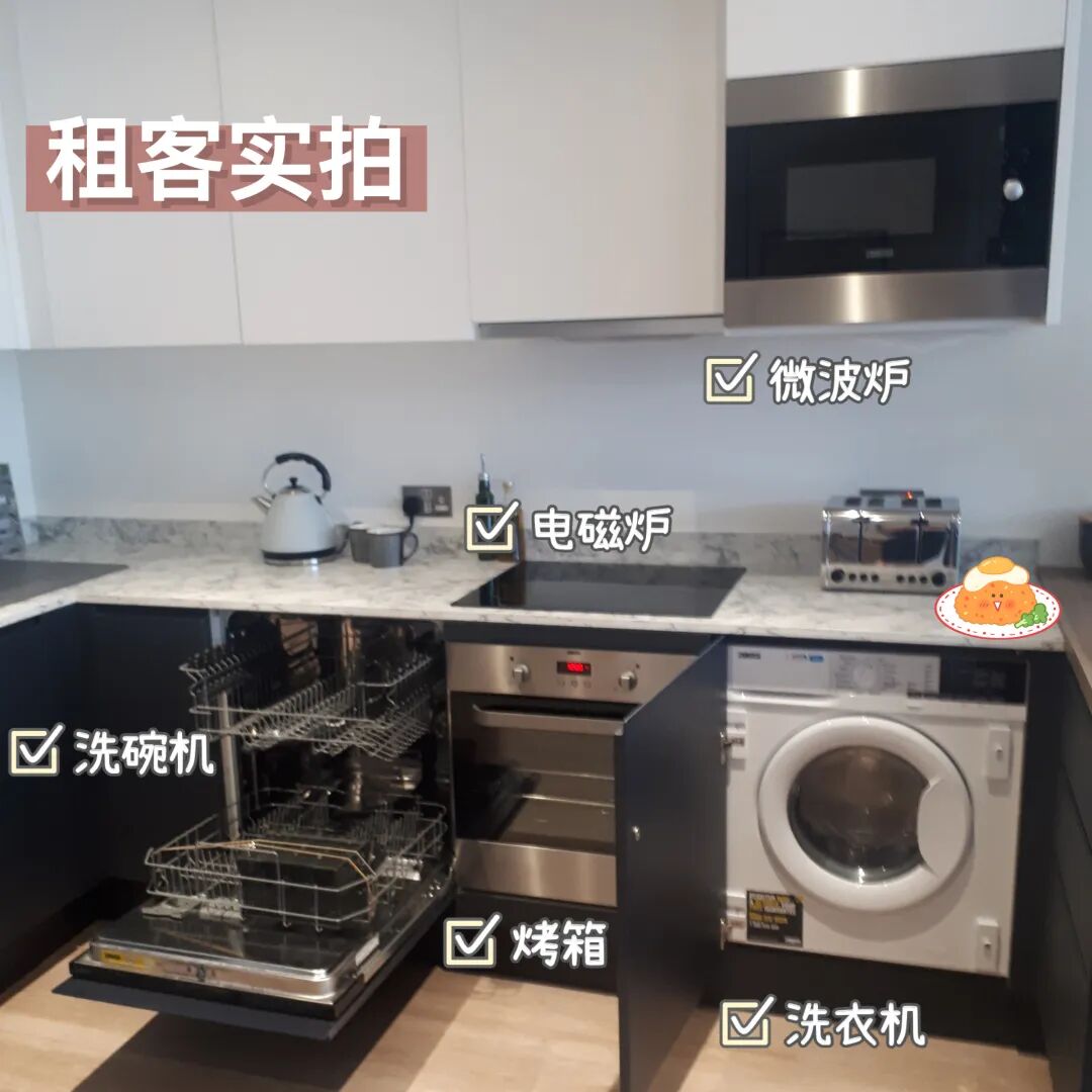 现代化设施的厨房有独立的烤箱、电磁炉、微波炉、冰箱、洗碗机和洗衣机。中餐西厨都能轻松Handle绝不含糊。再也不用看B站美食教程时忍受“烤箱劝退”的弹幕了。