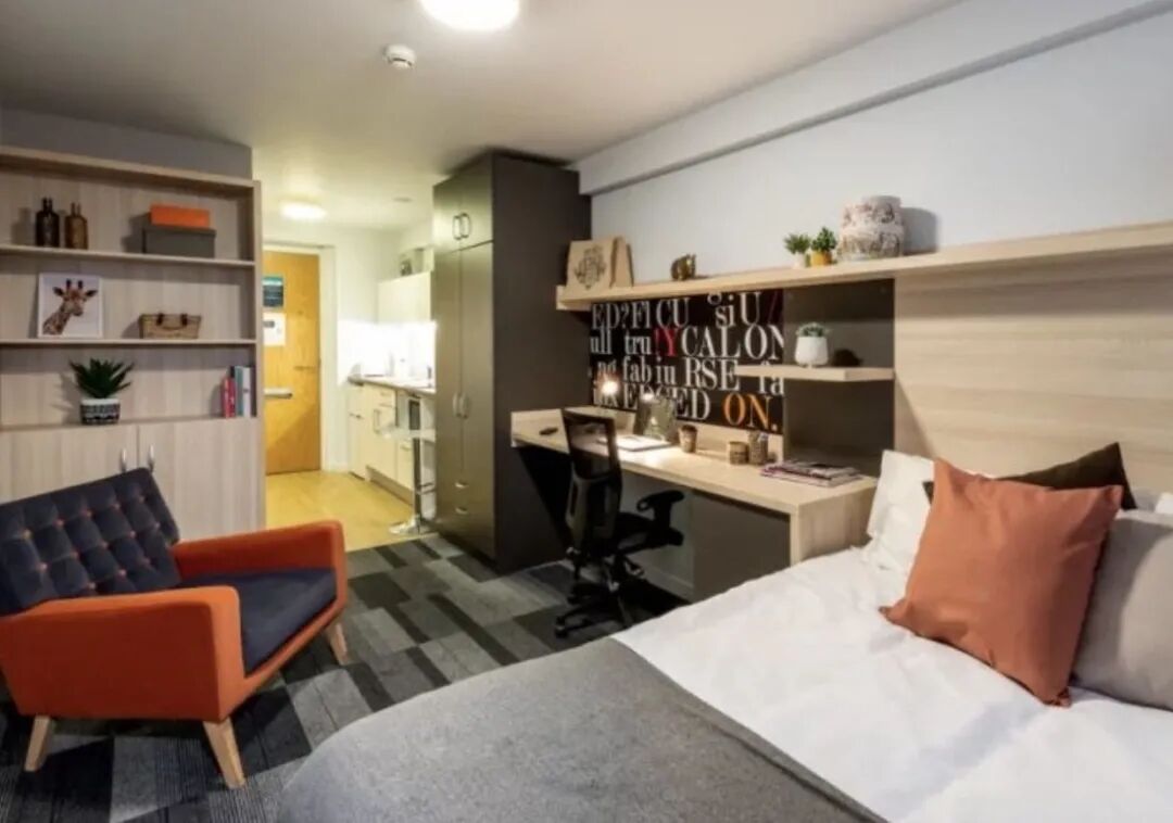 非常方便的地理位置,离管理学院和市中心很近,周边中超英超很nice,公寓提供了豪华宽敞的单间套房,充沛的储物空间,定制化厨房和卫生间