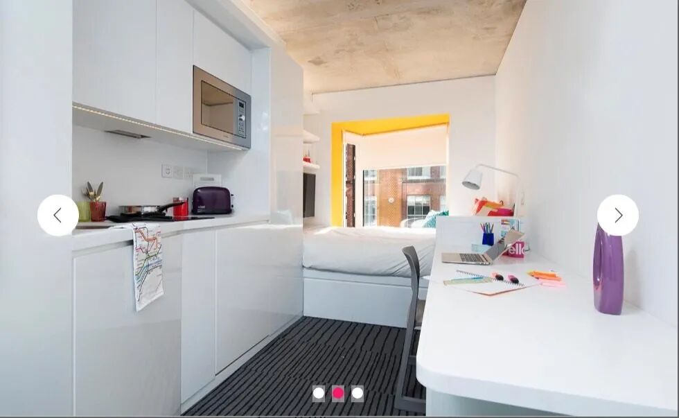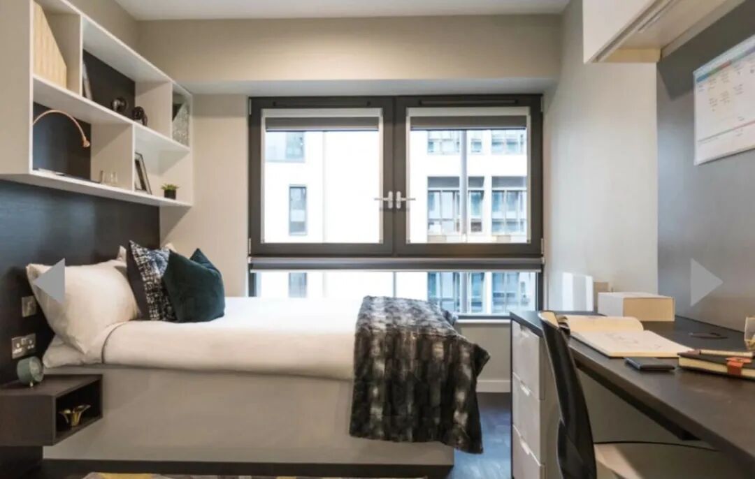 楼下走路30秒有Sainsbury’s,步行三分钟内两家中超,十五分钟内路程内有东伦敦最大的Waitrose和数家tesco,可散步至塔桥,common room 洗衣房舞蹈房健身房钢琴房自习室都有,房型为最大的studio,带落地窗(床旁边的那个窗户),有空调