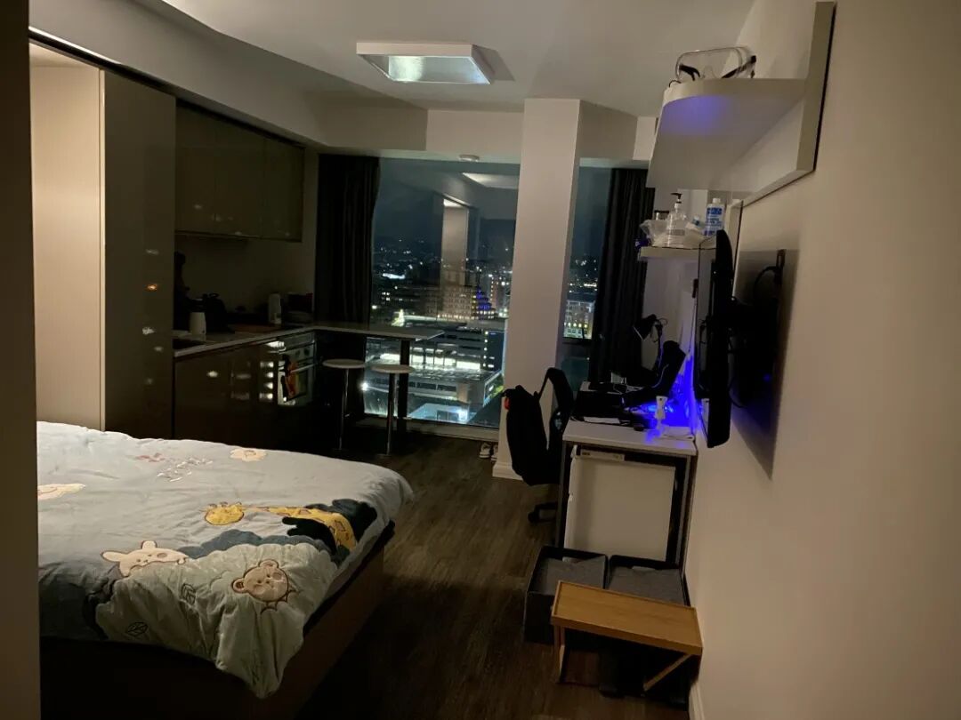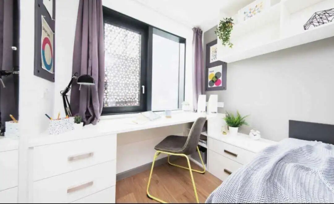 曼城2020年新开的公寓,设备很新,双重门禁非常安全,一楼有洗衣房。楼下有24小时营业的Spar便利店,中超和韩超。走路十分钟到超市Lidl和Tesco,五分钟到南校区