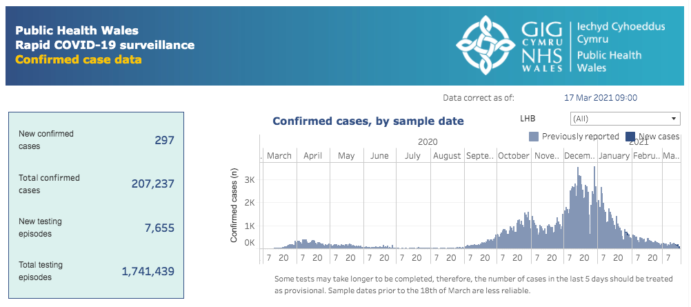威尔士地区 | 疫情数据趋势图