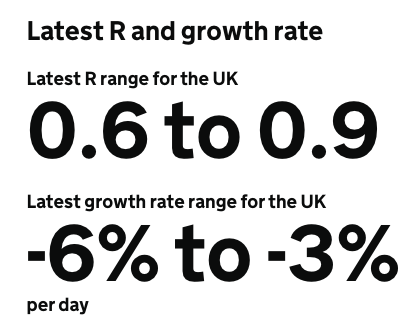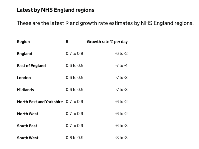 -6%至-3%的增长率意味着新感染人数正在以每天3%至6%的速度减少。对R和增长率的估计是不同流行病学情况的平均值,应被视为对总趋势的指导,而不是对流行状况的描述。