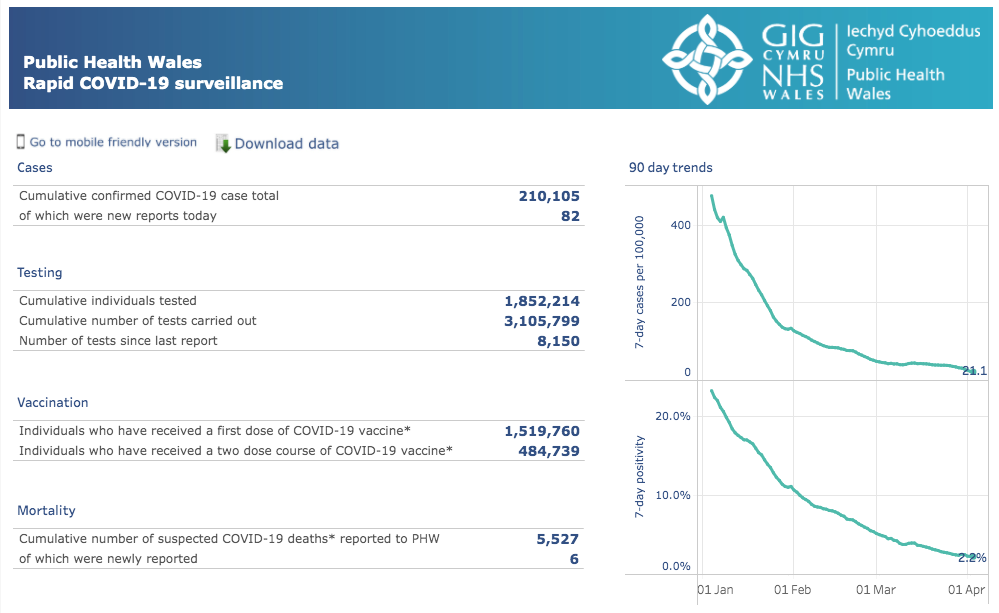 威尔士地区 | 疫情数据趋势图