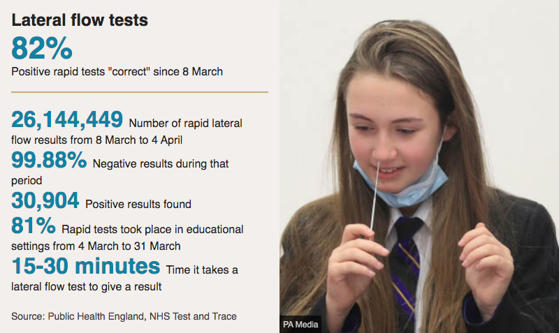 自学校复课以来,英国所有的中学生都被要求每周进行两次考试。人们曾担心,结果不准确所以不必要自我隔离,但这些担忧没有根据。