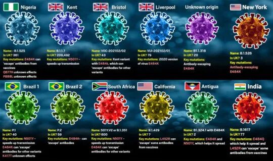 变异在大多数病毒中很常见,有时变异很小,甚至会降低病毒的传染性。然而,有人担心,这两种突变结合在一起会使毒株更具传染性,并能更好地避开以前感染或接种疫苗时获得的抗体。