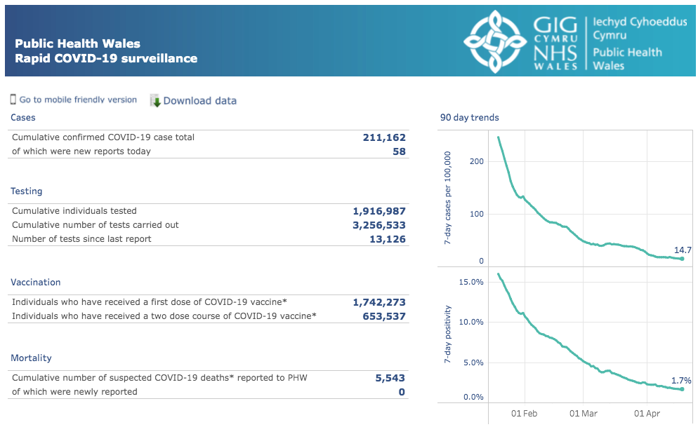 威尔士地区 | 疫情数据趋势图