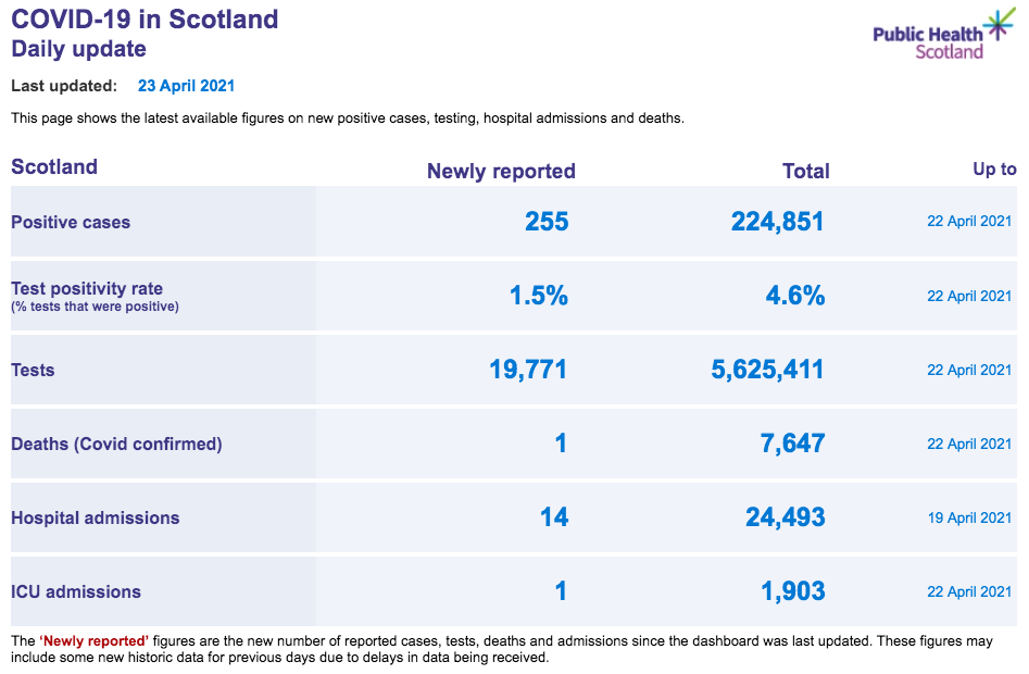 苏格兰地区 | 疫情数据趋势图