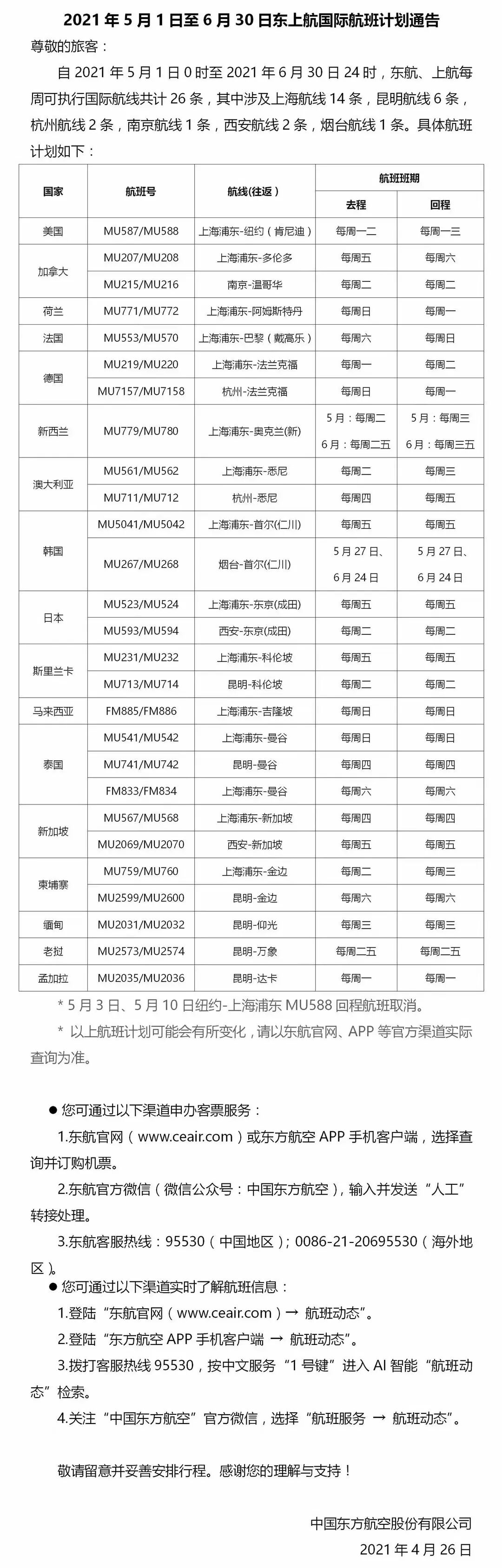 东方航空5月1日-6月30容的航班计划不包含英国
