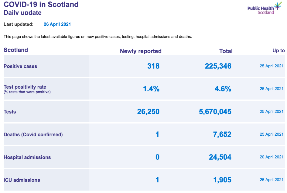 苏格兰地区 | 疫情数据趋势图
