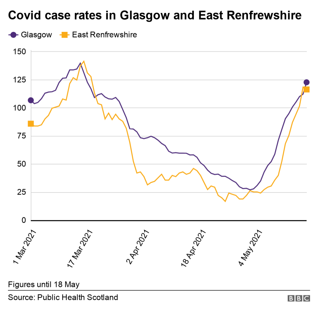 苏格兰首席部长尼古拉·斯特金(Nicola Sturgeon)表示,尽管在全城部署了“广泛的公共卫生措施”,包括在冠状病毒感染率最高的地区加强检测和疫苗接种,但格拉斯哥的病例仍在继续上升,特别是在城市南部的G41和G42地区。