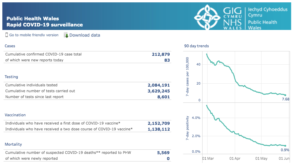 威尔士地区 | 疫情数据趋势图