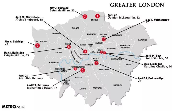 从数据上看,我们几乎可以悲观地预测:这个四月,伦敦的暴力案件并没有出现放缓的迹象。事实也是如此,这才4月3号,大都会警方接到的命案就已经有2件之多了。
