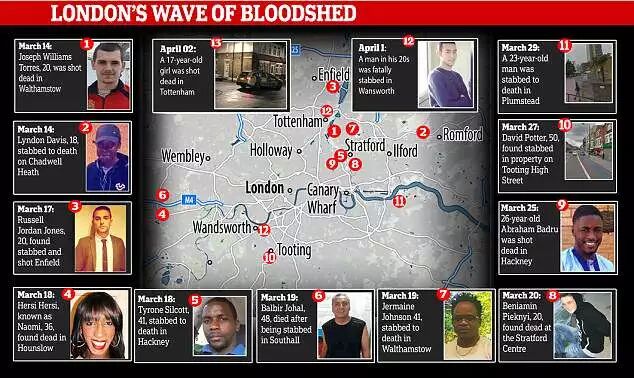从二月份起,伦敦便赶超纽约成为西方第一暴力发达城市。2月份,伦敦有15人遇难,纽约只有14个。三月份就更不用比了,伦敦发生了22起杀人事件,比大洋彼岸地下暴力长期统治的纽约多了一倍。
