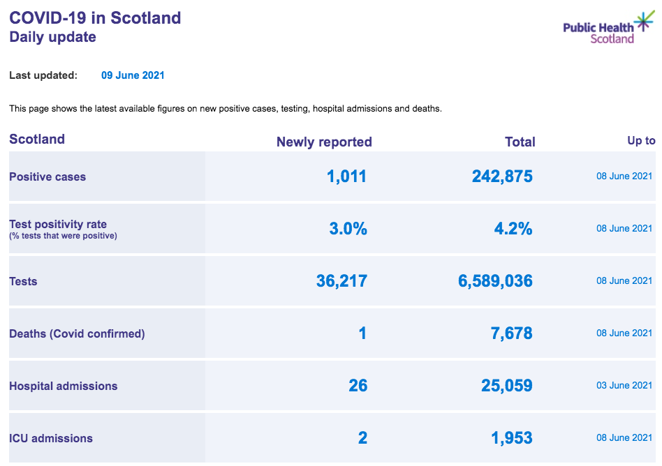 苏格兰地区 | 疫情数据趋势图