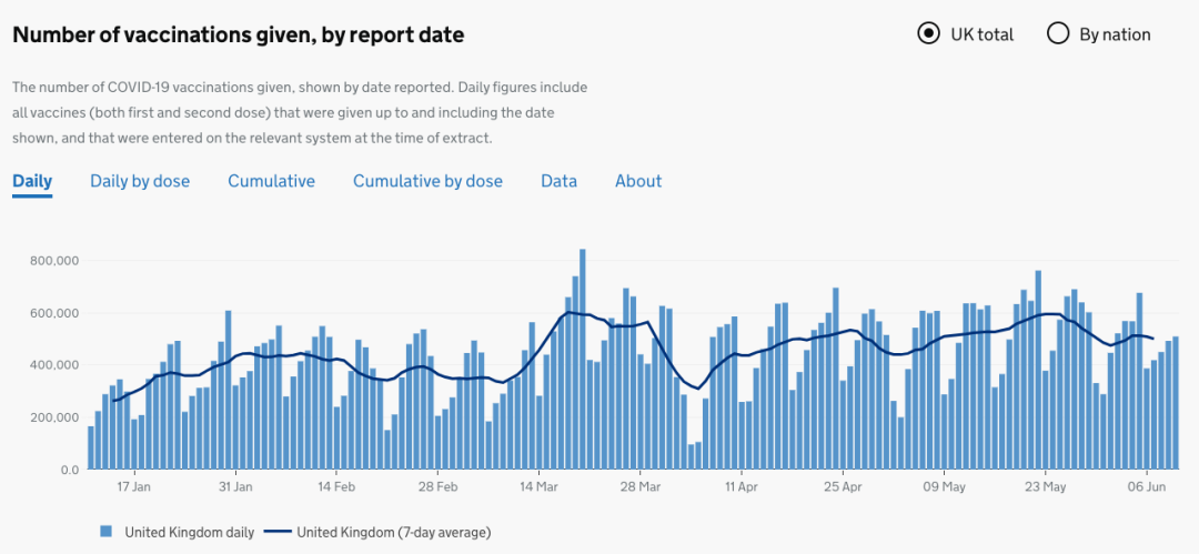 6月11日星期五公布的最新数据显示,英国目前已累计为成年人接种了7000多万剂COVID-19疫苗。