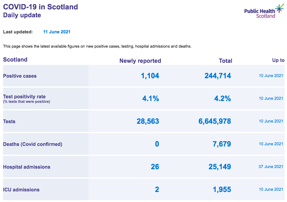 苏格兰地区 | 疫情数据趋势图