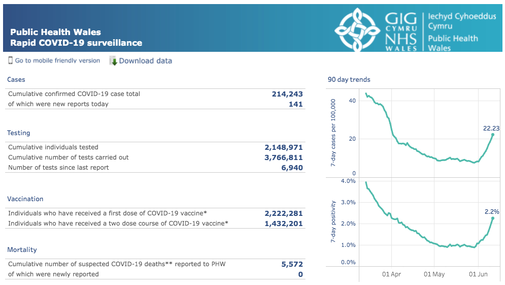 威尔士地区 | 疫情数据趋势图