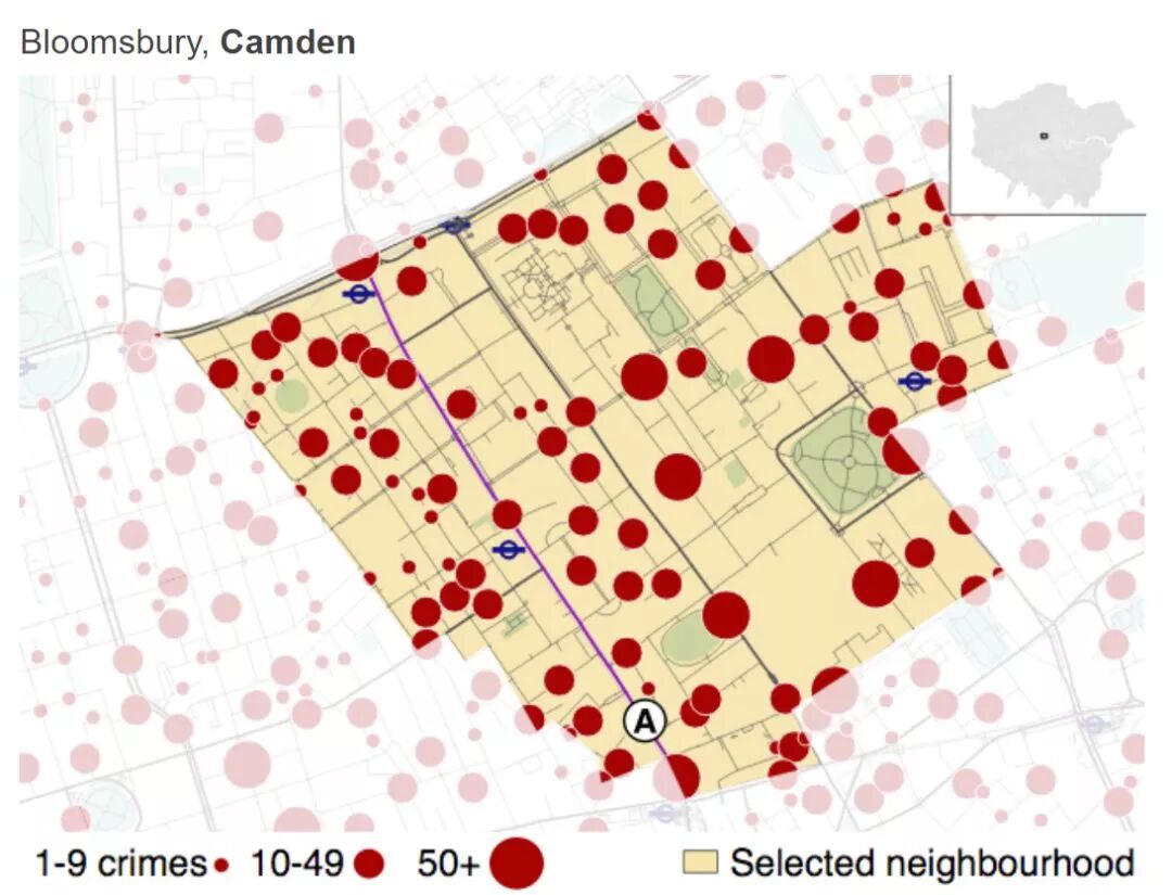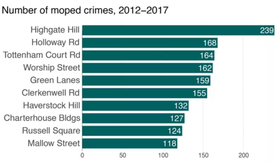 而这些"飞车抢劫"事件最高发地区居然是Camden和Islington!君君默默为UAL和UCL的小伙伴们捏了把汗。