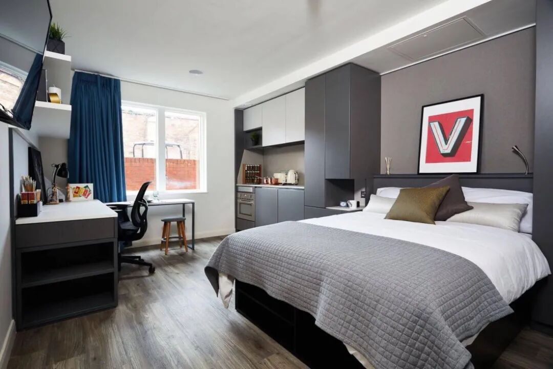 #利兹洪玮学长(原租房君) | 市中心楼下就是超市,黄金地段非常好,公寓设施齐全,有洗衣房和超大自习室还有可以社交的场地