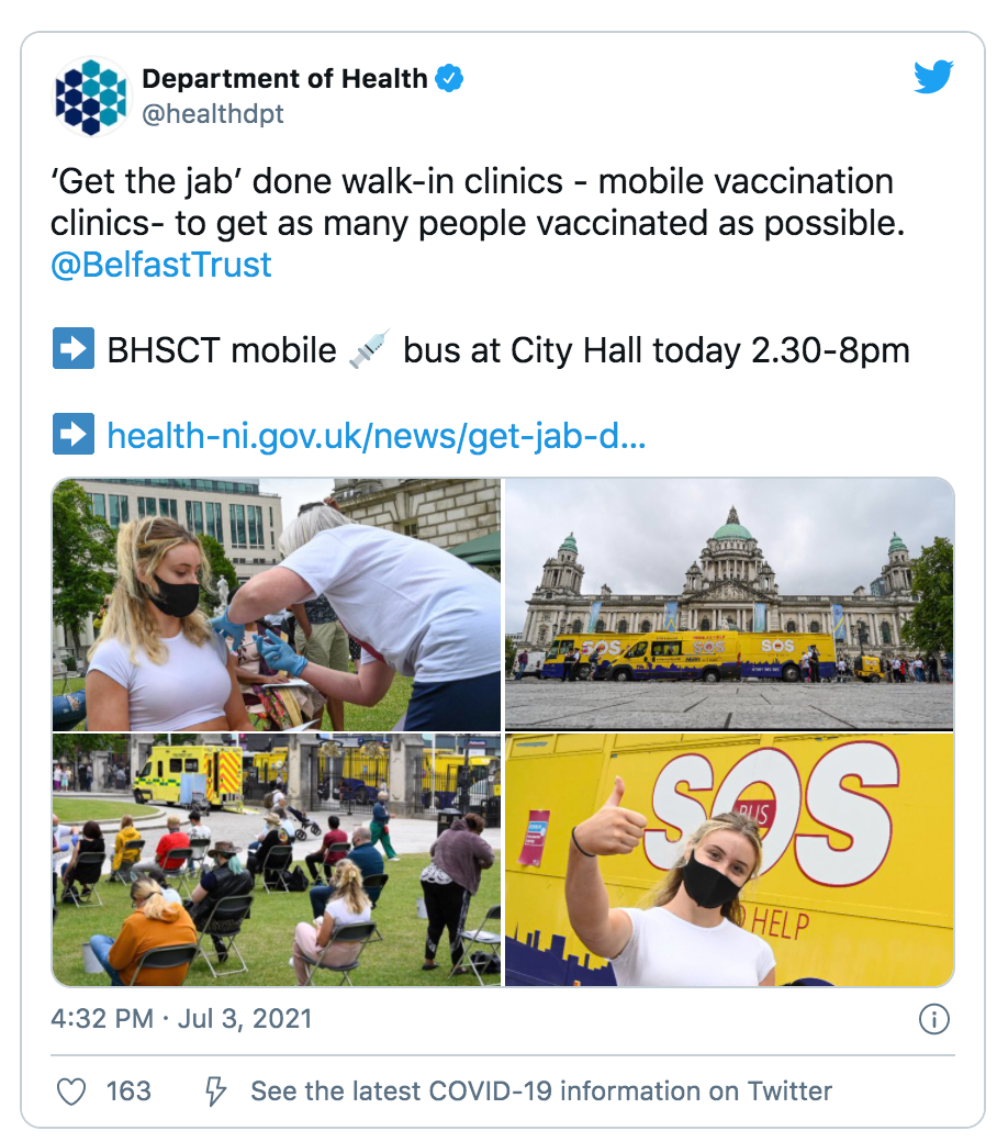 北爱尔兰一直在开设免预约疫苗诊所,为年轻人接种Covid-19疫苗做“最后努力”。