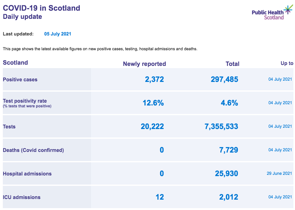 苏格兰地区 | 疫情数据趋势图