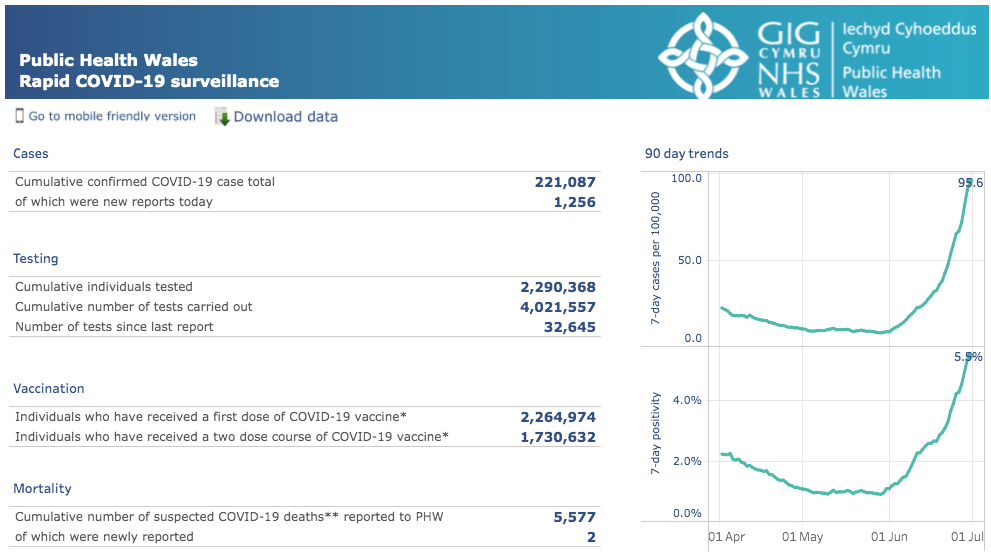威尔士地区 | 疫情数据趋势图