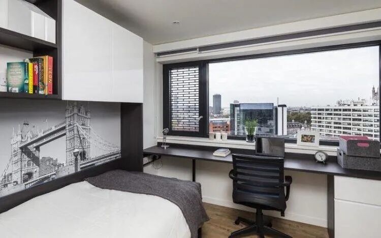 楼层最高36楼 高楼层的房间可以俯瞰整个伦敦。设施也非常齐全,公寓ground floor和9floor都有公共空间,提供健身房 学习室 影音室等基础设施,Reception的工作人员 周一到周五在线,负责处理事务和收发快递,刷卡门禁+24h安保/监控