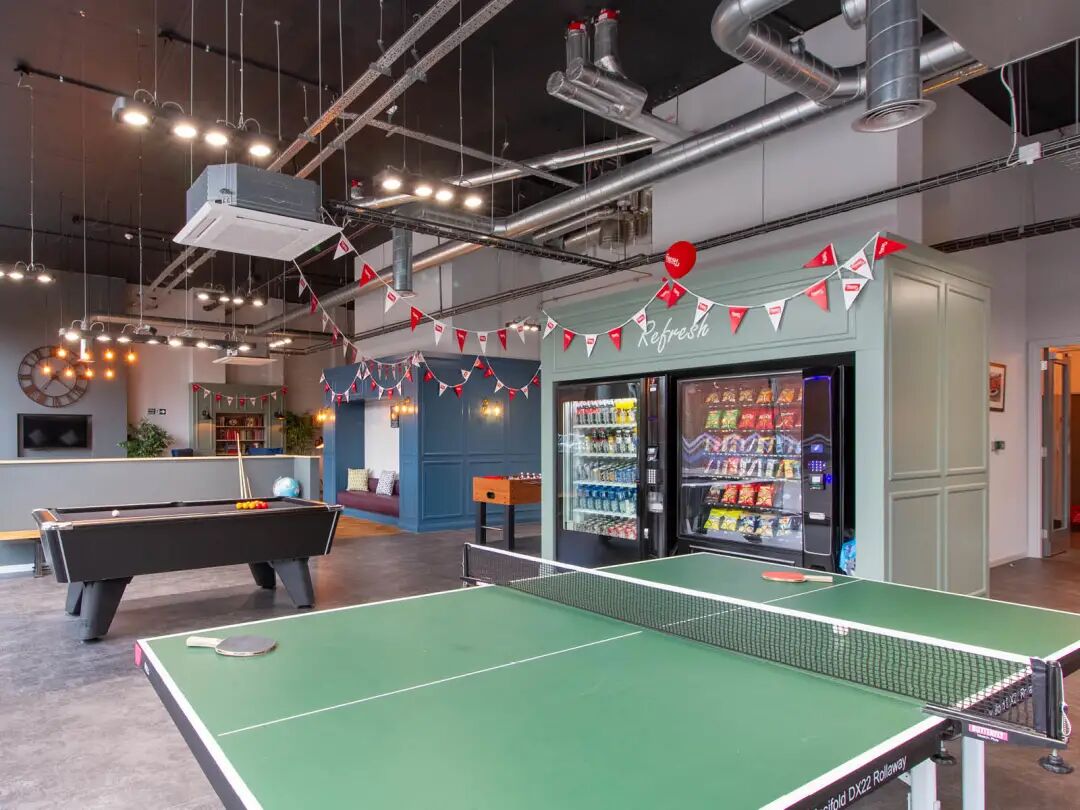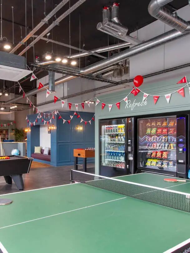 游戏区域配备了足球桌、台球桌,