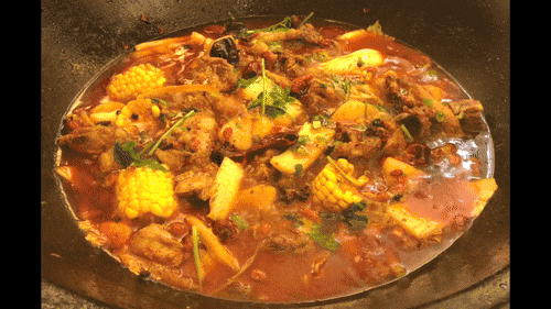 他说冬天一定要吃乱炖(居然玉米土豆放点肉一起煮就成了菜)