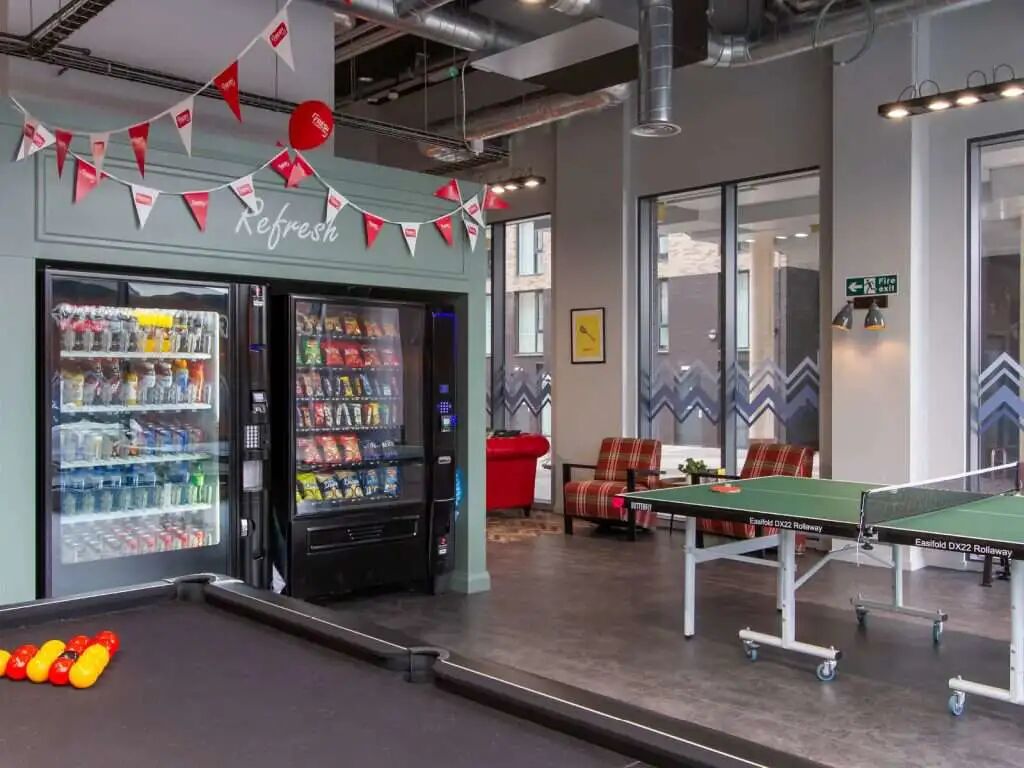 公寓的设施齐全,游戏室,学习室,洗衣房应有尽有,还有电视区域。可以在社交区域结交不同国家地区的朋友。游戏区域配备了足球桌、台球桌,可以闲暇之余和朋友一起在这里娱乐开黑。