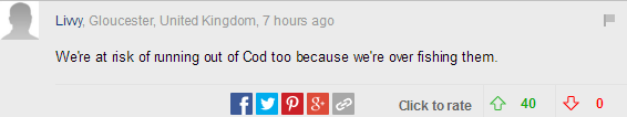 我们也有耗尽鳕鱼的风险,因为我们正在过度捕捞鳕鱼。