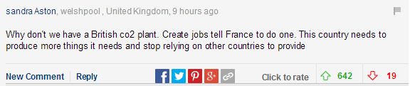 为什么我们没有一个英国的二氧化碳工厂呢?创造就业机会,告诉法国也这样做。这个国家需要生产更多必需的东西,不再依赖其他国家。