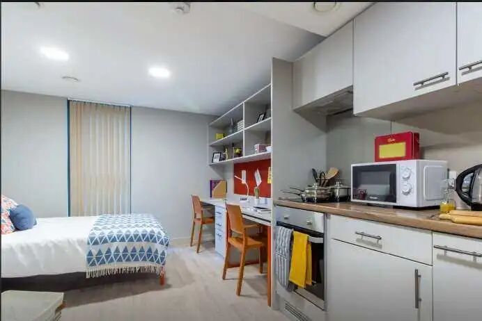 #谢菲尔德洪玮学长(原租房君) | 公寓附近有超市,购物方便,有班车接送,上下学方便,公寓每两周有免费打扫,公寓设施齐全,有电影房,KTV房等娱乐场以及健身房等
