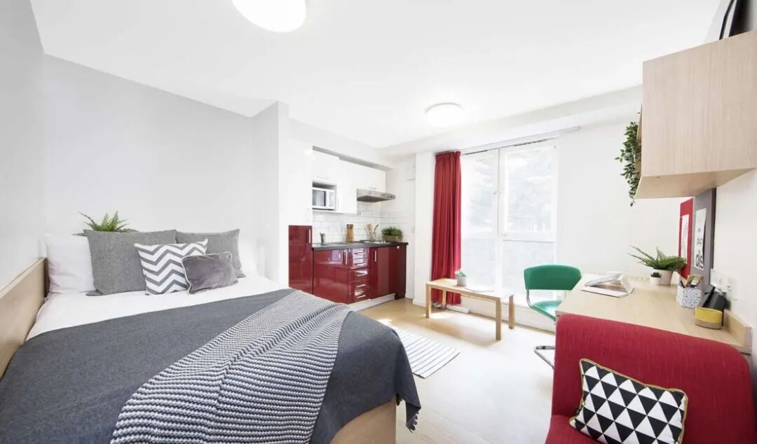 走路到玛丽女王大学三分钟,包含wifi,水电费,暖气和煤气费用,以及公用洗衣房,公用厨房和公用休息室。大门有门禁很安全,附近超市很多,购物方便,交通便利