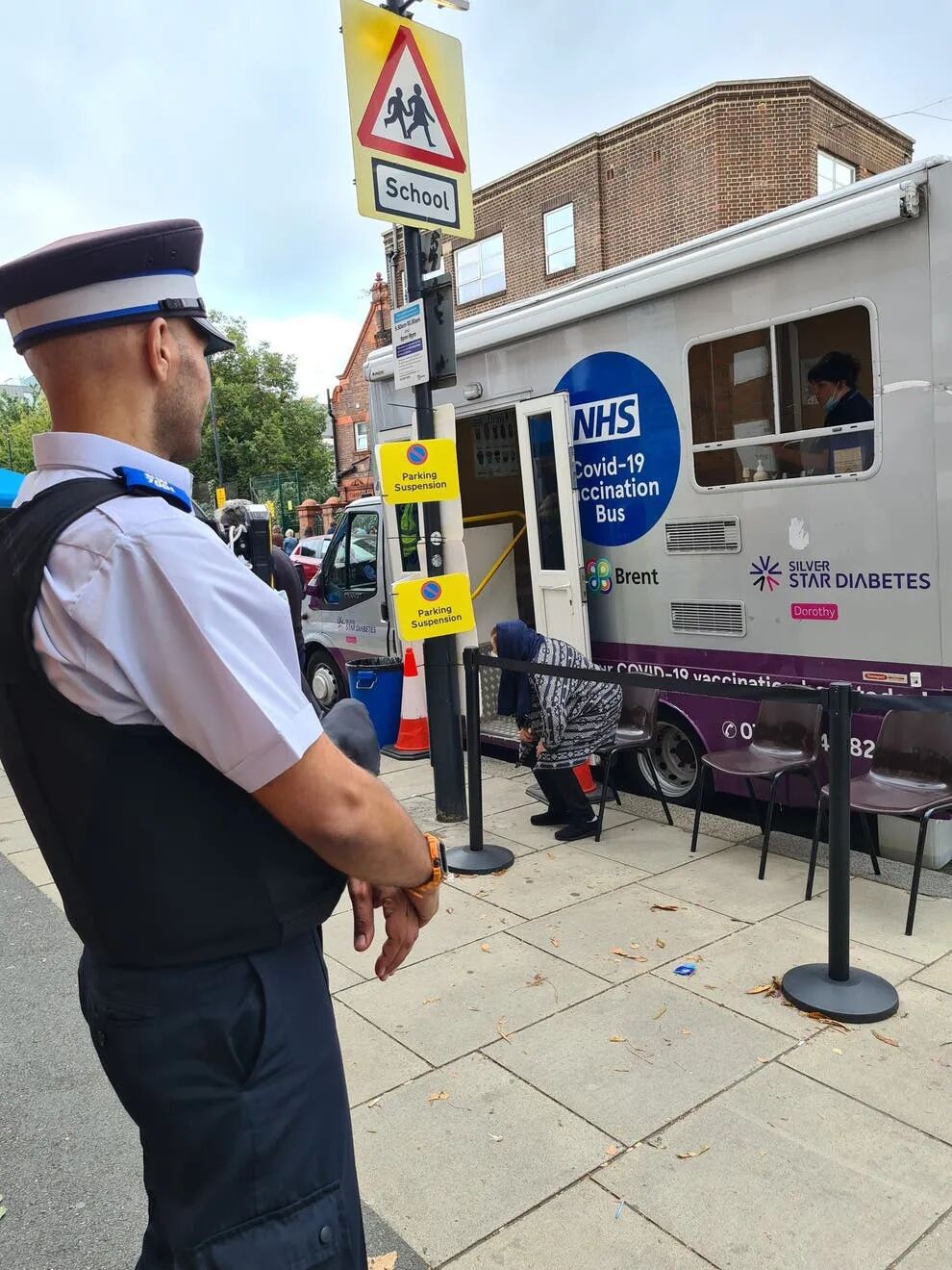由于反疫苗者对NHS工作人员的情绪越来越不稳定,并试图阻止公众接种疫苗,现在在NHS疫苗移动站点旁都有警察进行静态巡逻。
