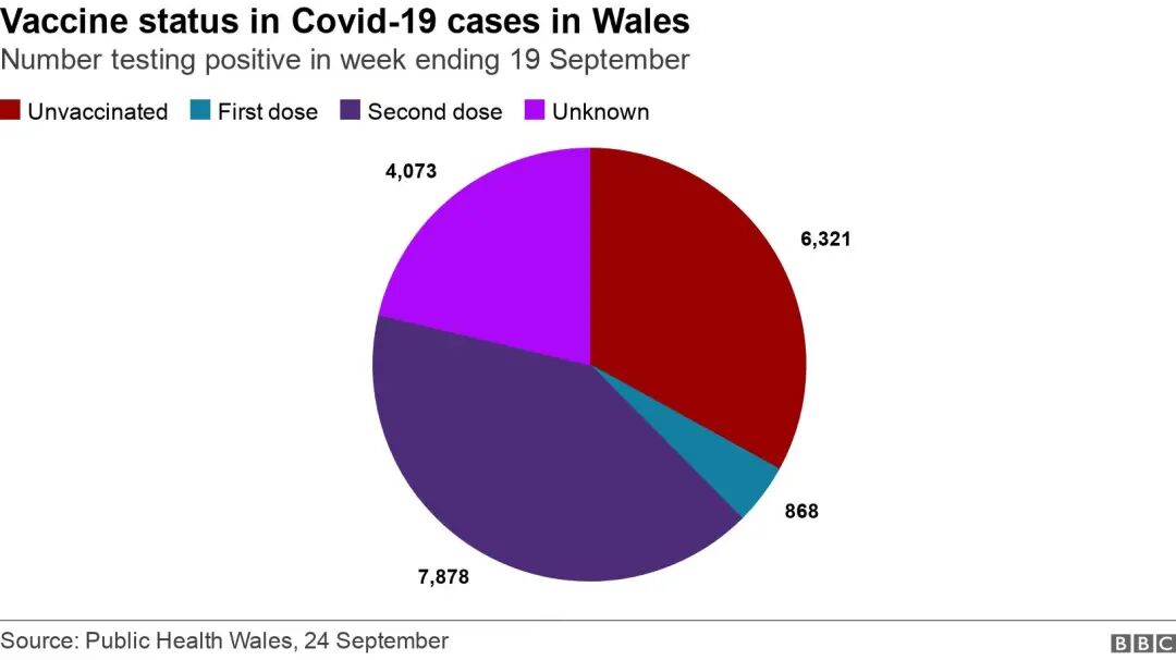 根据威尔士公共卫生部发布的新数据,过去一周威尔士确诊的Covid病例中有三分之一的人没有接种疫苗。