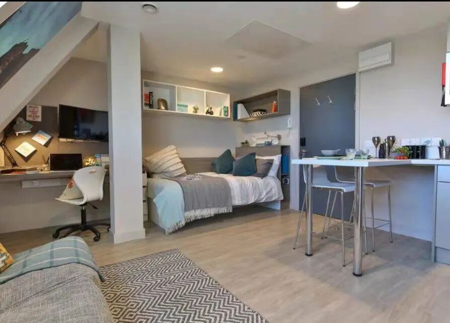 四人间,室友中国女生。有窗户,风景好,房子朝东,夏天非常凉快。楼下就是中超,asda,宜家和主要商业圈。步行十分钟到火车站,做公交车23分钟到南安主校区。