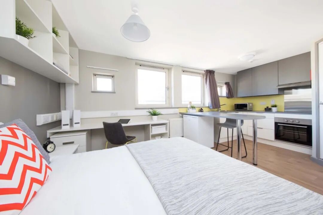走路两分钟到达sainsburys和ASDA,和地铁火车站,配有二十四小时安保和健身房,新建好的学生公寓有免费打扫和免费早餐等各项服务并且建有学习区域娱乐区,studio classic plus房型有落地窗并且是黑白灰色调高级简约。(还有vita自己的超过三百人的微信群可以认识新朋友互相帮助)